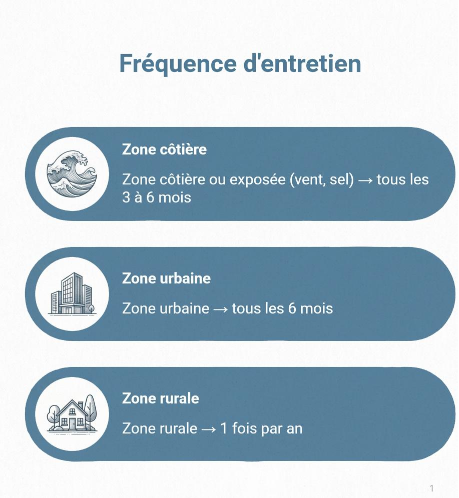 Nous entendons par localisation, des zones géographiques plus ou moins exposées aux éléments et qui nécessitent un nettoyage plus ou moins fréquent.